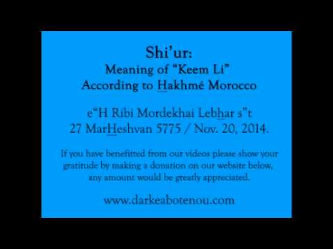 Moroccan Customs and Halachot, Shiurim / Posted on November 20, 2014June 12, 2018 Shiur – What does “Keem Li” mean according to Moroccan Hakhamim?